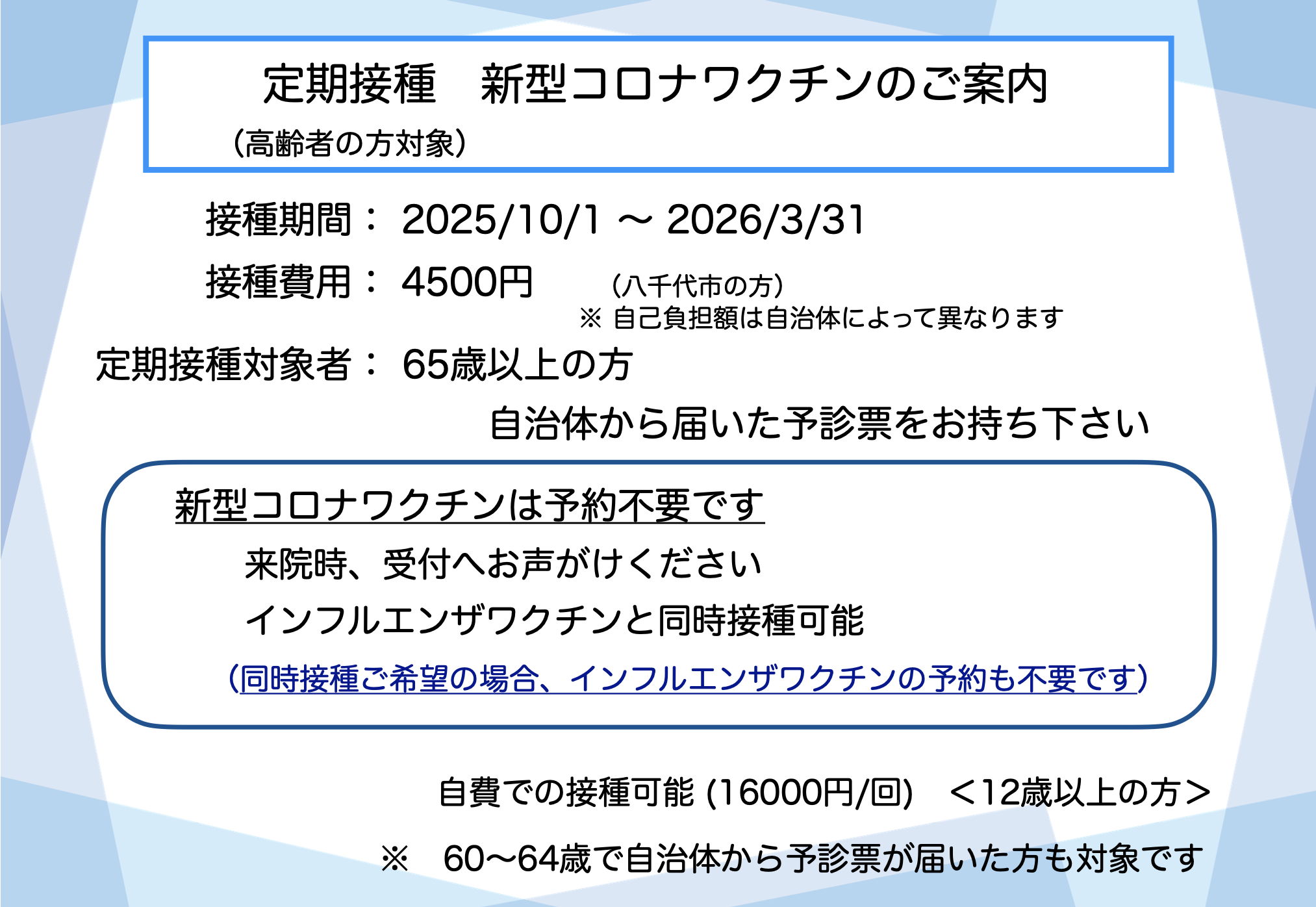 新型コロナワクチンのご案内 高齢者対象